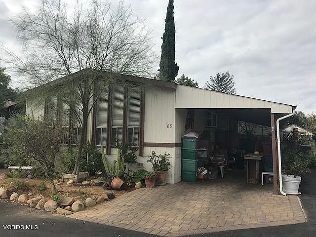 This mobile home is in one of the most desirable parks senior Parks in Ojai. Situated in on a corner lot in the back section of the park. This home has a fully fenced yard, 2 bedrooms, office with double doors, 2 bathrooms, newer kitchen, vaulted ceilings, bullnose corners on all walls, large porch, and large carport.