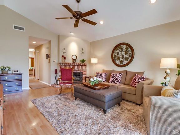 Spectacular Single Story home in the charming, gated community of West Village of Singing Hills. Home is move-in ready with vaulted ceilings, recessed lighting, ceiling fans, wood laminate flooring, designer paint, large skylight, brick fireplace & more! Enjoy the peaceful serenity & views from the back yard which includes beautiful landscaping, complete with several fruit trees & drought tolerant plants. This community offers 2 parks, picnic areas, swimming pool, spa & even gated RV parking! Don't miss out on this gorgeous home!