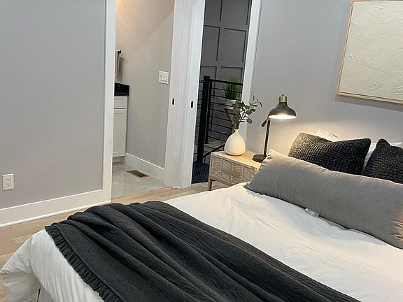 New condo. Stunning kitchen with large quartz water fall countertop, stainless steel appliances, white cabinets. Open living room. Main level has primary bed and bath with custom accent wall with massive walkin closet. Second bedroom is adjacent to the primary. Walk down the spiral staircase to third bedroom with its own bathroom. 400+ sf fenced private backyard. Beautiful unit in secured building. Leasing term negotiable. not furnished No smoking