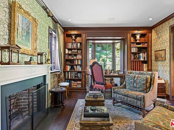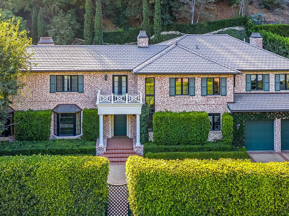 Exquisite Gated Georgian Traditional on coveted Stone Canyon in lower Bel-Air. Redesigned by Architectural Digest 100 designer Charlotte Moss, this elegant 5 bed, 5.5 bath home is minutes from the Bel-Air Hotel. Through the grand entry, step down to the dining room, or enter the expansive living room & paneled library just beyond. All rooms feature French doors that open onto the manicured gardens. The massive kitchen, with Carrera marble countertops & fridge in the island, features an informal dining space & large-scale family room with fireplace. French doors lead to the dining terrace, complete with built-in BBQ. A butler's pantry, powder room, maids' suite, & two-car garage, complete the first floor. Upstairs, three large bedrooms are joined by a sitting room or possible playroom, while the master retreat, includes a balcony & a sitting area with fireplace. Through the master bathroom is a large walk-in closet. This elegant estate will be appreciated by the most discerning buyer.