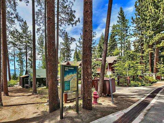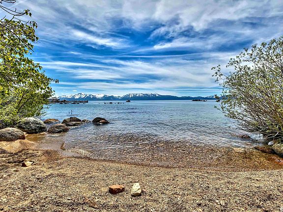 Positioned in the exclusive lakeside community of Lincoln Park, this 3-story residence is just a short walk to the homeowner’s beach and the crystal blue waters of Lake Tahoe. Merely a ½-mile from iconic Cave Rock, the property provides immediate access to the State Park and boat launch area, breathtaking vistas and trail heads. The home rests on a double-wide lot, providing a large fenced in yard, multi-level decks, carport, extra parking, and a historic silver miner’s cabin that functions as an ADU., The main level showcases an impressive great room with cathedral ceilings and a prow-front wall of glass that frames the adjacent forest and provides filtered lake views. The kitchen has been completely refashioned with painted maple cabinetry, a large peninsula island, slab quartz countertops and stainless appliances. An upper loft delivers a comfortable family room for the upper bedrooms, while the lower level presents a vast game room with wet bar, full-size refer, billiards, foosball, and poker table. The current shake roof is being replaced by 40-yr asphalt composition and all the decks are being completely rebuilt with new framing, decking and banisters. The interior has been repainted and all bedroom carpet is being replaced prior to close of escrow. The home sells fully furnished.