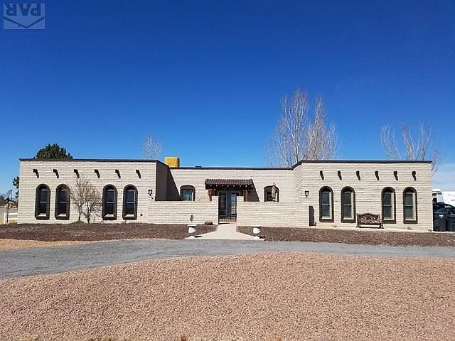 Beautifully remodeled, Spanish style home with lots of bright open space! Updated kitchen offers stainless steel appliances, beautiful tile floor, custom back splash, corian countertops, and a convenient pot filler over the oven! The gorgeous, wood burning fireplace is a wonderful centerpiece for the spacious, open living room. Both main level bathrooms are a must see! Elegant vanity, built-in shower shelves, and more lovely custom tile from top to bottom! Basement is home to 2 more spacious bedrooms, large family room, dry bar, weight area, and antique parlor stove! Brand new windows almost entirely throughout main level with transferable warranty. Each floor has its own Electric Thermal Storage (ETS) unit which heats the home which uses off peak electricity, baseboard heaters in each room as well.Outside has low maintenance xeriscaping, a beautiful functioning fountain, a large shed/barn, and over an acre of land! It's flat roof is makes roof maintenance very minimal. This home is one of a kind! Schedule your showings today!
