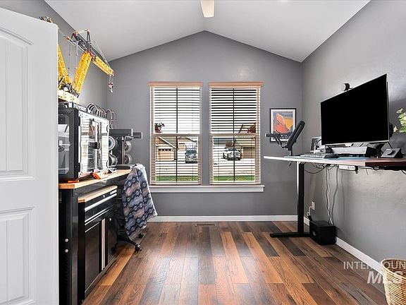 Enter into a realm of contemporary elegance within this spacious sanctuary, nestled on a lush .35-acre lot. Seamlessly blending comfort & functionality, relish the convenience of the main-floor primary suite and dedicated office space. Unwind in your ensuite featuring a lavish soaker tub, dual vanities, & a spacious walk-in closet, offering both convenience and indulgence. Discover the joys of cooking & entertaining in a spacious kitchen adorned with granite counters, central island and spacious pantry perfect for meal preparation and casual dining alike. Ascend to the upper level to discover a versatile living room/bedroom, perfect for leisure or entertainment. Escape outside to your private covered patio, expansive backyard with a fire pit and ample space for outdoor gatherings and recreation. Notice the whole house fan (a rare find), heated garage, & 220 volt outlet in garage. This home offers unparalleled comfort and luxury. New carpet in 2024! Enjoy lower cost electricity w/included solar panels!