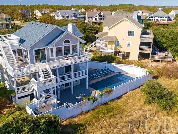 Just 65 yards from beach access, this meticulously maintained ocean-side vacation property is a true delight. Take a deep breath as you take in the stunning ocean views in this beautifully decorated open-concept home. The living areas have large windows and vaulted ceilings with a modern kitchen sure to impress. Enjoy your private pool, hot tub, screened-in porch, sun deck, and game room with full wet bar. As an added bonus, you will not want to miss heightened ocean views on the rooftop crows nest. All of this can be yours along with the amenities of Ocean Hill! Bike or walk to Corolla Village and enjoy the ice cream parlor, pizza shop, lighthouse, bookstore and more.