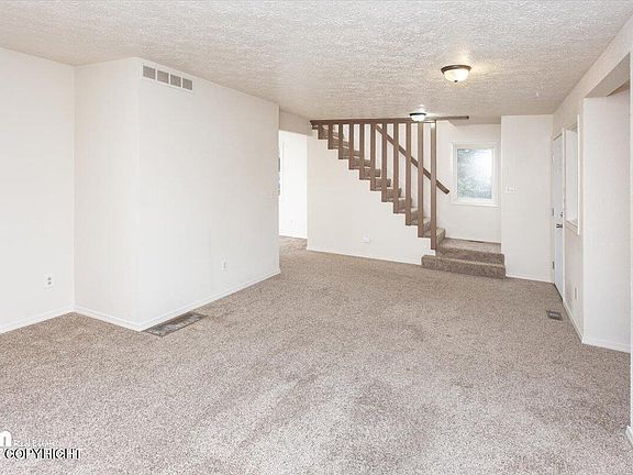 Nestled in a cul-de-sac with a large backyard, this beautiful 4 bedroom 2.5 bath home is located in a family friendly neighborhood in Palmer. Enjoy access to miles of trails as well as access to the Matanuska River.Garage has a work area and storage room. Attached carport for additional vehicle or toys. There is even an apple tree in the very large back yard!