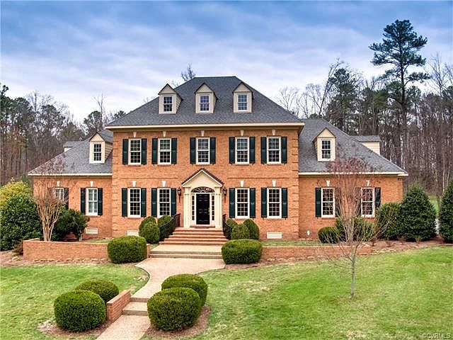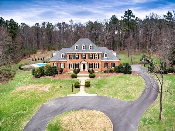 This beautifully maintained, private 6.39+acre Georgian estate is located in Short Pump. A gracious foyer, handsome formal rooms will impress w/fluted pilasters, multi-member crown w/dentil accents & 10ft. ceilings. Foyer opens to eat-in kitchen & family room w/full light french doors leading to covered porch overlooking the pool, patio and grounds. Most notable features include raised granite breakfast bar, two pantries, adjoining mudroom,raised panel cabinets w/upper glass lighted cabinets& tumbled stone backsplash. Family room features gas fireplace& built-in cabinets w/entry to screened-in porch & office or possible 1st fl. bedroom. Office has plantation shutters, expansive closet space w/french doors to screened-in porch. Master suite &3 additional bedrooms w/ 3 full baths & rec room on 2nd floor provide great living spaces for family. Front facade features bullnose brickfront w/jack arches over windows, corner quoines & circular drive w/spur to 3-car garage which includes an extra long 26 ft middle bay. Mature and professionally designed landscaping surround a "sundial" patio, retaining/sitting wall and 18'x36' gunite pool . There is a walk up 950+/- sf attic which could be additional living area - a peaceful retreat to call home!