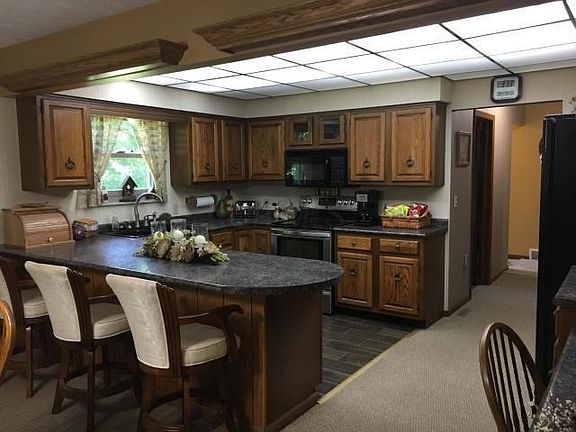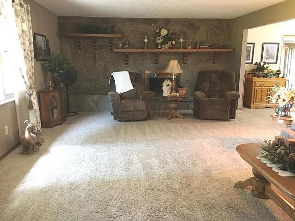 PRICED TO SELL!! One owner brick ranch, sits back off the road in a picturesque setting, mature trees, sits on 3.7 acres. Stone on fireplace w/solid oak mantels in spacious fam room w/picture window. Breezeway adds add'l 325sqft of sunny space w/built in bbq grill. Open kitchen & diningroom w/spacious oak cabinetry, breakfast bar, updated counters, fixtures/ Appls. 1st flr lndry w/cabinets and counter space. 1st floor Mstr w/walk-in closet and mstr bath. 2 add'l large bdrms , renovated guest bathrm w/dbl sink vanity. Full basement w/new pressure tank, sump pump and HW heater, fresh painted walls & flr. Home has an oversized side load garage, and plenty of workbench or storage room. Other Updates: roof, vinyl Anderson windows, AC, entry doors. Nice playground area for famil