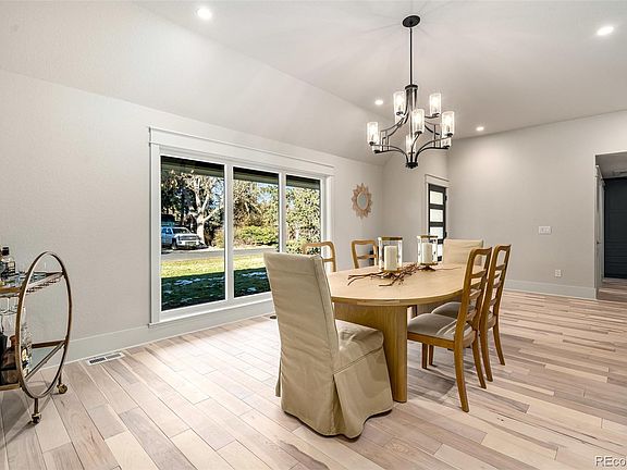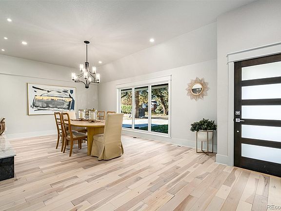 Absolute exquisite remodel in Applewood a year in the making. Taken down to the studs, this incredible sprawling ranch home full of brilliant light is nothing short of breathtaking. An entertainers dream with a wall of windows, 8' double sliders, and soaring 10' ceilings. Solid Hickory 3/4" hardwood floors greet you at the front door and carry you throughout the main floor. Incredible open kitchen with a Silver Stone accent wall, Midnight and Dove White maple shaker cabinetry, Quartz counters, huge center island, pantry with shelving, cabinets and pull out drawers, stainless french door wall oven, microwave oven, warming drawer, 6 burner gas range/stove, and a 42" built in refrigerator. Master bedroom with double sliders opening onto a patio and master bath with dual vanities, free standing soaking tub, unbelievable shower with 3 shower heads and a closet the size of a small bedroom. Main floor light filled laundry room, cabinets galore and a mud room with built-in bench seat, wainscoting beadboard wall with hook rail, and cubby shelves. The open staircase with cable hand rail leads into a fully finished basement with 10' ceilings, a family room, 2 bedrooms and 2 bathrooms. The spacious family room is wired and plumbed for wet bar. This home features an Ecobee smart thermostat, Ring doorbell, 3 car garage with wifi enabled doors and so much more than this space allows. The remodel of this home was thoughtfully designed and exceptionally executed. Quality craftsmanship throughout.