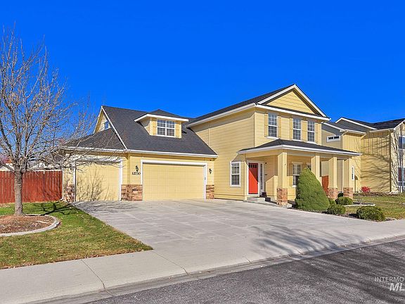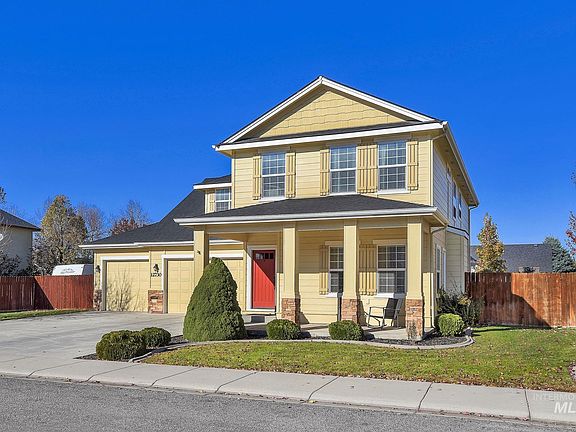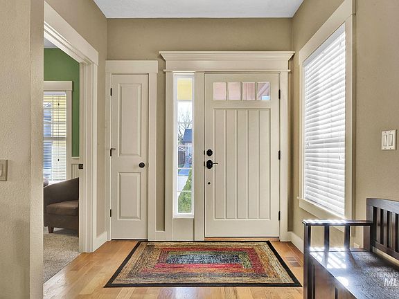 This meticulously maintained two-story home in the desirable Rockhampton subdivision is just a short walk to a community park and Boise Ranch Golf Course. The neighborhood features over 5 acres of parks, common areas, and walking paths. The home itself offers many recent updates including a newer furnace, newer roof, exterior paint refreshed 4 years ago, and stunning updates to the kitchen. Updates include top-of-the-line LG appliances, granite counters, and a gas stove. The home boasts elegant hardwood floors as well as tile floors in the bathrooms. On the main level you will find a guest room, office, and full bath. Upstairs, enjoy an expansive bonus area, loft area, 2 bedrooms, and the primary suite with vaulted ceilings and an en-suite. The attached garage, epoxied in 2023, offers extra storage and tandem space. Enjoy the warmth of a cozy gas fireplace and a formal dining room with a built in hutch. Outside you will find room for RV parking and a beautifully landscaped backyard, ready for entertaining.