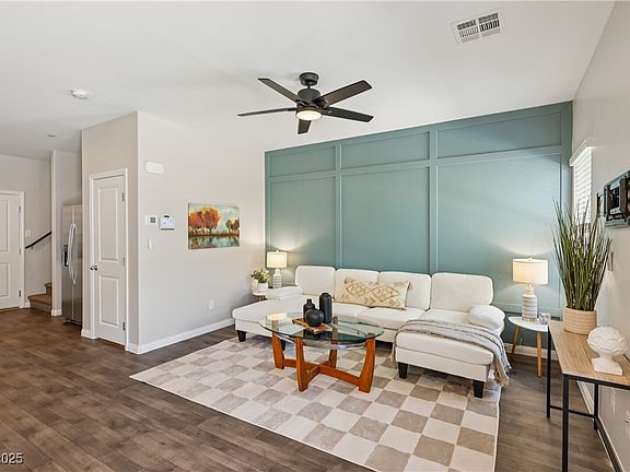 Welcome to Willow Trails—adjacent to Inspirada & Henderson Hospital West! This 2022-built corner unit townhome offers 3 beds, 2 bath, a loft, 2-car garage & a superior perimeter location w/ more space, privacy & a charming open patio. Inside, enjoy an open-concept layout w/ modern kitchen, SS appliances, pantry & breakfast bar. Upstairs features a versatile loft, spacious Primary suite. Stylish accent walls in the great room & Primary bedroom. Convenient upstairs laundry, generous storage & all appliances incl. (washer/dryer, too!). Paid off water softener and over-head racks in the garage stay! Enjoy a low-maintenance, lock-and-leave lifestyle in a community w/pool, parks, trails, dog park & stunning mtn views. A perfect blend of style, comfort & convenience!