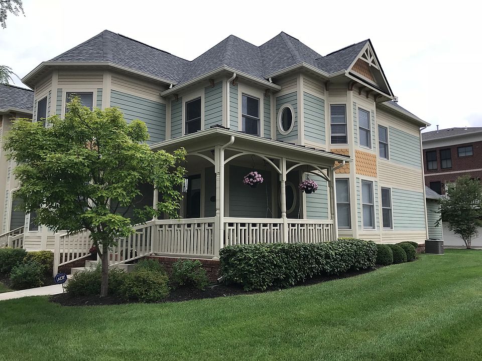 Charming Victorian Townhome in the highly sought after Village of West Clay! This beautiful & cozy end unit has a great wrap around front porch w/park views & recently finished Slate Patio w/ screen wall adorned w/ pretty landscaping & lighting perfect for entertaining! FIRST FLOOR OWNER SUITE w/ bay windows & park views. Upstairs w/additional 2 BR's, Full BA & spacious loft for entertaining & relaxation space, crown molding, beautiful hardwood flrs, & lots of natural light. 2 story GR w/ fireplace open to Kitchen & Dining. Gourmet Kitchen w/ island plus bar top & SS appliances. Enjoy Maintenance Free living & all amenities the Village has to offer. Short walk to 24 hr GYM, access to pooL, tennis, parks,shops,trails and dining,
