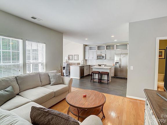 Beautiful updated townhome in Blakeney with garage! Kitchen has all new appliances, new cabinets, and granite countertops. Primary bath has new vanity, flooring, mirrors, lights, tiled shower with custom full glass door! 2nd bath has new vanity as well. Large primary bedroom with walk in closet. Fenced yard with patio area backs to wooded area. Newer AC (2 years). Carpet 1 year old. Roof 1 year old. New thermostat and smoke detectors as well! This house is completely ready to move right in. Easy access to shopping, dining and more.