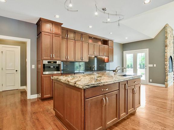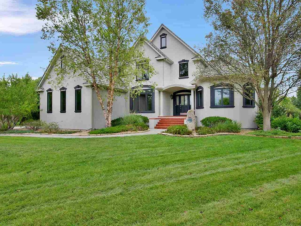 Come see this gorgeous 11/2 story home on large, private lot perfect for entertaining. The backyard is a taste of paradise with a gas heated, saltwater pool with automatic cover, sport court, beautiful patio, deck, waterfall, fire pit and outdoor grill and fireplace. Take the party inside the walk-out basement to a bar with full size refrigerator, microwave/toaster combination, wine refrigerator and built-in dishwasher. The large family room has built in speakers, media storage and a gas fireplace with brick surround. The basement is rounded out with two bedrooms with a jack and jill bath, exercise room and plenty of storage. Upstairs, enjoy a gourmet kitchen with professional grade appliances, hardwood floors, granite counter tops, Viking wine refrigerator built-in espresso machine, island with breakfast bar, separate full-size refrigerator, freezer, and ice maker. Renew yourself each evening in the lovely master suite with trayed ceilings and heavenly bath with his and her walk-in closets and vanities, jetted tub, tile shower and separate room for commode. The stunning foyer invites you to a large formal dining room and living room with hardwood floors, wood-burning fireplace with stone surround, crown molding, recessed lighting, and vaulted ceilings. Four large bedrooms on the upper floor with Jack and Jill and additional bath, Davinci roof with lifetime warranty, brand new windows throughout the house, sprinkler system, three-car, side-load garage, tons of storage are many of the wonderful features in this fabulous home in walking distance to Crestview Country Club. Andover Schools!