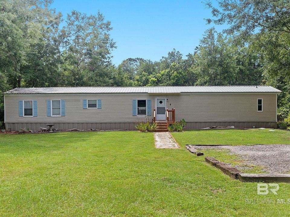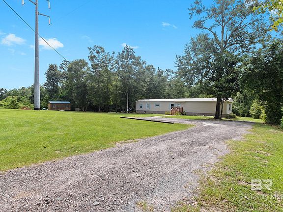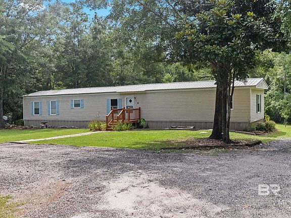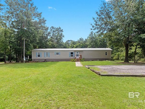 Looking for a home with privacy and acreage in a great location? Look no further! This home is conveniently located just minutes from the Magnolia Springs Elementary School and downtown Foley. This 4 bedroom, 2 bathroom mobile home sits on approximately 3.24 acres of unzoned land at the end of a quiet cul-de-sac street off of Hwy 98. The acreage behind the home is wooded with a small creek running along the edge of the back yard and the woods. This great home has been well taken care of and loved! It features granite countertops in the kitchen and wood flooring throughout. This home includes a large back deck, an above ground pool, a designated fire pit area, and a 10 x 20 shed. The home is on well water, has a septic tank, and has RV hookup capability. Schedule your showing today! Buyer to verify all information during due diligence.