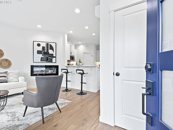 A newer construction end unit townhome with an open main level that makes entertaining a breeze. The generous living room with an electric fireplace flows easily to the kitchen with gas appliances, quartz counters, eat-up bar, peninsula, walk-in pantry and dining nook. Upstairs, you'll find a primary suite, a spacious walk-in closet, vanity with double sinks, shower, two bedrooms, another full bath, a utility room equipped with a washer and dryer (included), a two car garage and central air. This home has it all! There's a community park too! Enjoy the close proximity to all the new shopping, new restaurants, newer schools, Fred Meyer.
