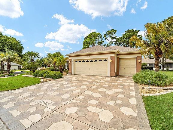 Imagine turning the key to open the door of this BEAUTIFUL house you'd be proud to call your home! Located in DEL WEBB SPRUCE CREEK GOLF AND COUNTRY CLUB! The CONCRETE BLOCK/STUCCO CUSTOM SANTA ROSA model has 2,493 square feet under heat and air with a NEWER ROOF and NEWER 19 Seer 5 Ton Lennox HVAC, both replaced in 2020. This OPEN FLOOR PLAN home has 2 Bedrooms (LARGE MASTER SUITE with En-suite Master Bath!), 2 Baths, and also an additional DEN/OFFICE. A CUSTOM EXTENDED FLORIDA ROOM (14x28) has LOW-E GLASS WINDOWS and was built as part of the original home plan with no step-down. You'll find well kept HARDWOOD FLOORING in the main living area, TILE in all wet areas, and IMPECCABLE NEUTRAL CARPET in the bedrooms. The entire interior has been NEWLY PAINTED and has NEW CROWN MOULDING installed in 2021. PLANTATION SHUTTERS are THROUGHOUT THE HOME and a cozy GAS FIREPLACE highlights the Living Room/Dining Room combo. The Kitchen boasts a DINING NOOK, BISQUE DESIGNER WOOD CABINETS WITH LIGHTING, GLASS BACKSPLASH, GRANITE COUNTERTOPS, BREAKFAST BAR, and STAINLESS STEEL APPLIANCES with GAS CONVECTION RANGE (2018). The EXTENDED 2-CAR GARAGE and GOLF CART GARAGE have HIGH GLOSS EPOXY FLOORS. Complete re-piping of the home was done in 2019. THE CURB APPEAL IS SECOND TO NONE with CUSTOM DRIVE AND WALKWAY, STONEWORK, and AMAZING LANDSCAPING with LIGHTED PALMS AND PLANTINGS. 245 . BACKYARD BLOCK PATIO. SO MUCH MORE! COME SEE FOR YOURSELF! ***OWNERS HAVE HAD A FULL HOME INSPECTION BY "NATIONAL HOME INSPECTIONS" (9/01/22) REPORT AVAILABLE. SUMMARY ITEMS ARE BEING ADDRESSED. CLOSING DATE NEEDED AFTER 12/01/22.