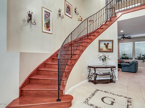 ARE YOU LOOKING for Country Living with the City Convenience! Look no further. A well-constructed home that's nestled on 5.75 mature acres of land. Featuring wide open spaces offering more privacy. Custom built home, beautifully detailed & comfortably elegant! Solid wood front door with dual sidelights & palladium window opens to a dramatic foyer with 18ft ceilings and stunning curved wooden staircase with black wrought iron railing. Porcelain tile, 12ft ceilings throughout 1st floor. Kitchen: Granite counters, island and custom cabinets + breakfast bar, hardwood flooring, travertine backsplash, and breakfast room adjacent to large screened in sunroom perfect for entertaining guest and family or adding a pool for those relaxing evening. Formal living room, Formal dining room,