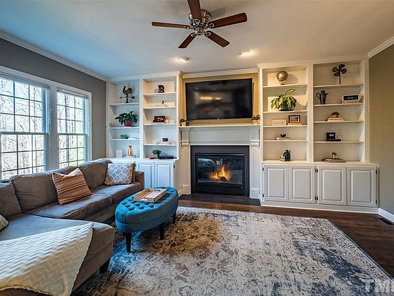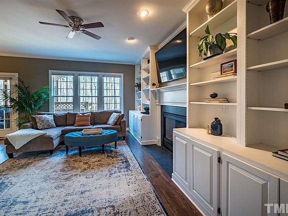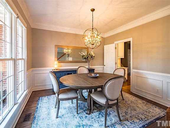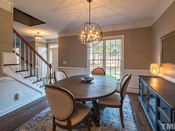 Stately home nestled on almost an acre in N. Raleigh! Meticulously maintained! Gorgeous hardwoods downstairs, Bright and Open Kitchen boasts white cabinets and beautiful granite counter tops, tons of storage, brkfst nook, fam rm complete w/gas log fp, built-ins, formal living & dining w/wainscoting, Master down w/amazing WIC, spa-like bath,sep shower, soaking tub, tile flrs,4 bdrms+bonus rm, walk up attic w/ incredible storage,screened porch & great deck overlooks private yard, 2 car gar,amazing schools!