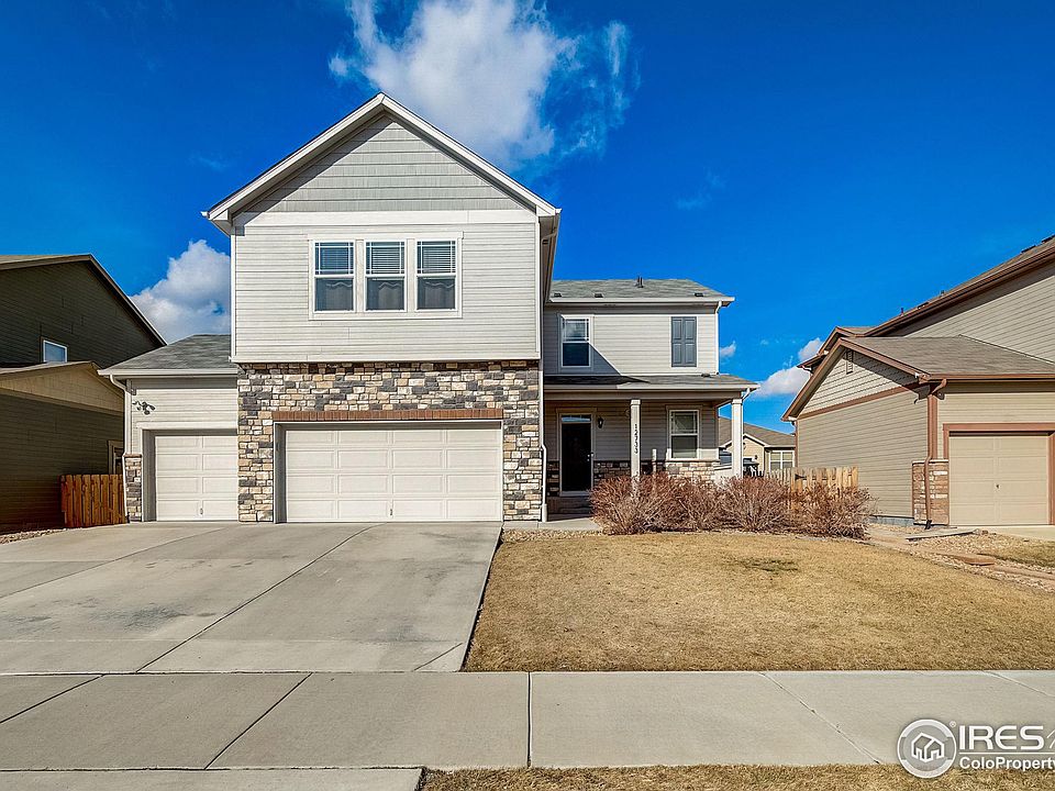 Welcome to this newer 2 story home that is move in ready. Why wait for brand new construction at much higher prices. This home welcomes you with a south facing front porch leading into a foyer with hardwood floors. To the right is the powder room and straight ahead is the great living room with carpet, open to the dining room with hardwoods as well as the open kitchen with large island and granite countertop. Dark cabinets frame the kitchen area and are really the latest trend. Loads of cabinet and counterspace plus 2 pantries make this a center for entertaining. Garage access is nearby to the 3 car garage which offers loads of storage for cars as well as toys. The backyard is accessed from the dining area and has a concrete patio. A sprinkler system is in the front and back yard as well as a playset, garden area which is all fenced in. The upper level has a large loft which is perfect for a playroom, study or media room or even an extra guest area or add a wall for a 4th bedroom. The primary bedroom is in the front of the home with walk in closets, remodeled 5 piece bath, rain shower and soaking tub. There are also 2 secondary bedrooms, a full bath with double sinks and upper level laundry including the washer and dryer.The lower level basement is "ready to finish" with rough in plumbing, high ceilings and sump pump. Workout mats included!