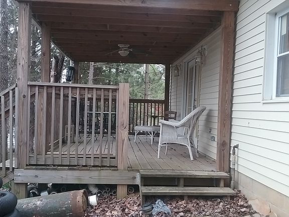The home has a deck out the back door and leads up to the garage which has a French door with deck and covered porch. Duel fuel heat, c/a both home and garage.Also garage furnished with 1/2 bath and kitchen. The home is furnished with dish washer, natural gas stove/range. refrigerator& Washer and dryer. The kitchen has lots of cabinets and counter space. All hooked up with city water ,sewer, and natural gas. paddle boat,4-wheeler,riding mower, gulf cart all included.
