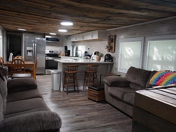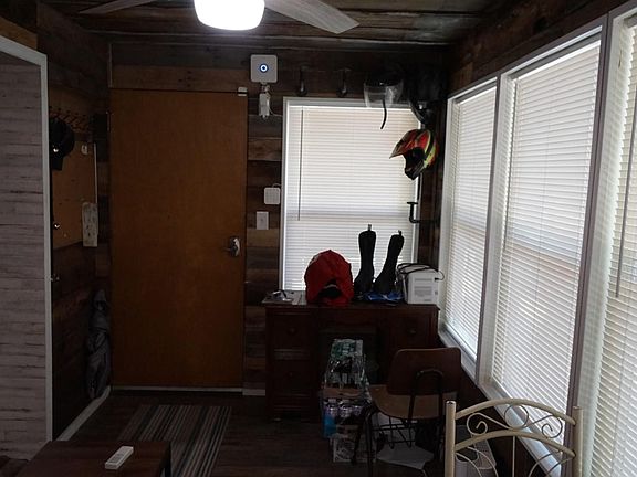 Vacation retreat completely remodeled in 2023 has 2 bedrooms and 2 bathrooms. New walls, flooring (including subfloors), lighting, plumbing. New kitchen cabinets, Corian counter tops, refrigerator, range, dishwasher, washer and dryer. New hvac, high efficiency natural gas., & new instant water heater. Half bath in second bedroom. Screened porch off owner's bedroom adjacent to full bathroom. Screened sunroom overlooking yard with firepit, cabana, storage barn and access to lake. No sign in yard. GPS directions may be incorrect. Follow directions in listing to find property.