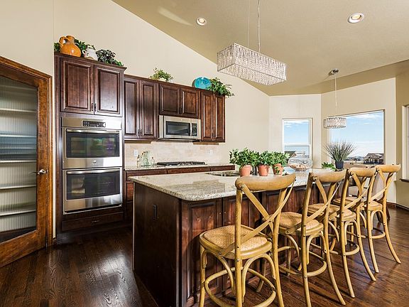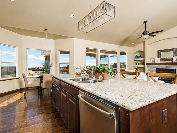 Gorgeous new home located on over an acre lot in Meridian Ranch Estates* This quiet community boasts many recreational amenities including a golf course, hiking/walking trails, and a full rec center with pool and gym* This home has an attached oversized 4 car garage* There is also an office with french doors* The Great room has vaulted ceilings, built-in bookshelves, and a cozy gas fireplace with stone surround* The Gourmet kitchen opens up to the Living room with a large island that has bar seating* The Kitchen has 42" cabinets and a stone backsplash* The Living room also walks out to a large concrete patio* The Master bedroom adjoins to a bath with a soaking tub, free standing shower, double vanity, and soaking tub* This home also has the Mini-Master bedroom option with its own walk in shower, double closets, and double vanity* The garden level basement is a finished basement which includes 2 bedrooms, 1 bathroom, family room with no media room this area would be unfinished.
