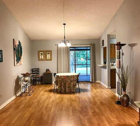 Cozy 2 bed/2 bathroom bungalow home in desirable Mandarin area! An Open Floor plan with a combo living/dining room with a new light fixture. The single car garage has a new garage door. 3 new exterior carriage lights. Fresh Sherwinn Williams paint inside and outside with some new siding. New bathroom sinks and faucets and new kitchen faucet. AC is only 7 years old and a newer hot water heater. House has been re plumbed. All this and a NEW ROOF going on before closing. Kitchen is big and has a lot of counters and cabinets. Wood laminate floors. Huge screened back patio that has a separate shower....great for your pets or after a beach day! A fenced yard too! No HOA fees and close to 295 and 95, public boat ramp, the growing Bartram Park area with new shops and restaurants and Baptist South Hospital. Save money on your utilities because this home has a private well for water and also a private septic tank. This home is down the road from larger homes that are right on Julington Creek. Don't miss out! Pre approval letter required prior to all showings.