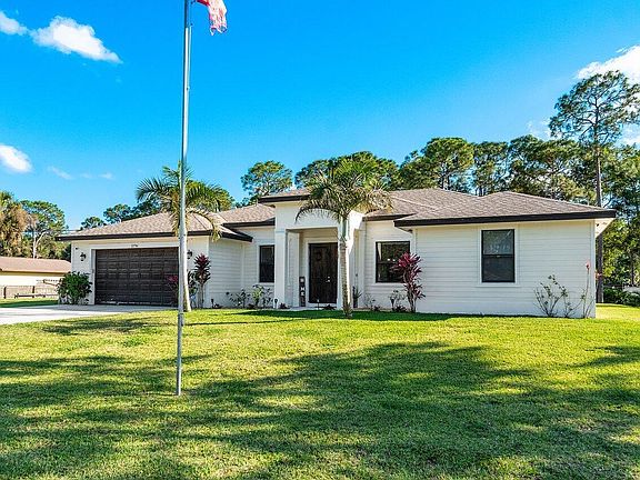 Are you looking for your dream home? Well look no further than this beautiful Acreage home built in 2019. This stunning energy efficient home features an amazing open floor plan with huge bedrooms and 12 ft ceilings that make the home feel like much more than 2229 sq feet. Your amazing kitchen features beautiful gray granite counters and top of the line stainless steel appliances. The bathrooms feature floor to ceilings tiled showers and baths and frame-less shower enclosures. As you make your way outside you find yourself on the oversized screened patio ideal for entertaining and on those colder nights you can sit by your fantastic fire pit. The home also features a full irrigation system as well as an oversized car port ideal for your boat or camper with full power.