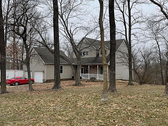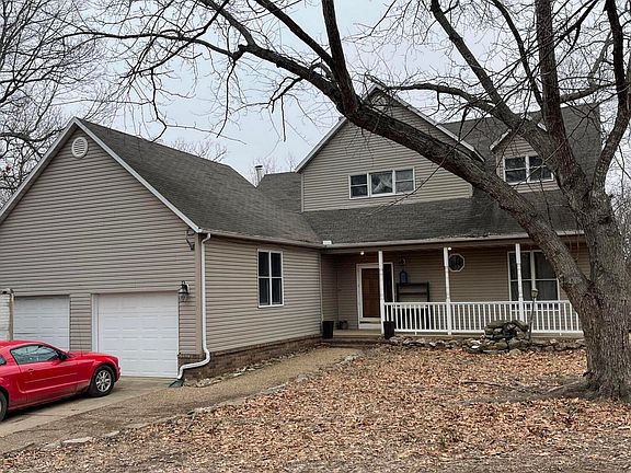Nestled in the tree's just off state maintained Highway A sets this custom built 4 bedroom, 3 bath home. This story and a half home features a full walk-out basement entrance which provides access to a single bedroom, full bath, and two additional rooms for many optional uses; in addition a garage and service room combo area containing the well pressure system, water softner, HVAC system and a wood burning furnace. The main level features lots of windows throughout; a main floor living room with double sided gas fireplace, dining area, and a kitchen with a bar, pantry, & laundry that can be accessed from the 2 car garage. Large deck to enjoy the countryside. Two bedrooms and a full bath complete the main level layout. The upper level is home to the master bedroom, bath, and it's own deck area. The 5 acre property has a seasonal live water, privacy and a chicken house. A must see!!!