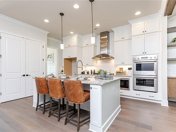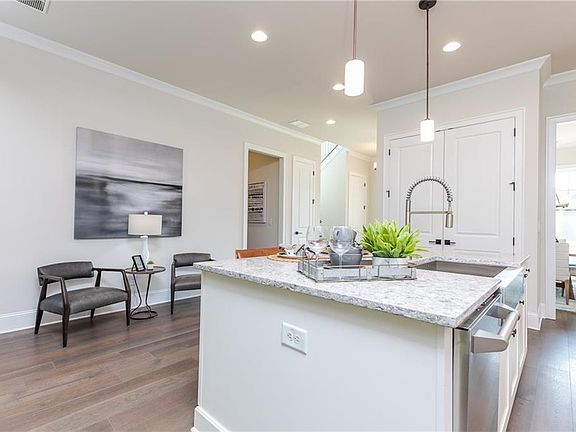 - Kitchen Features: Breakfast Bar, Pantry, View to Family Room, Stone Counters, Kitchen Island, Cabinets White