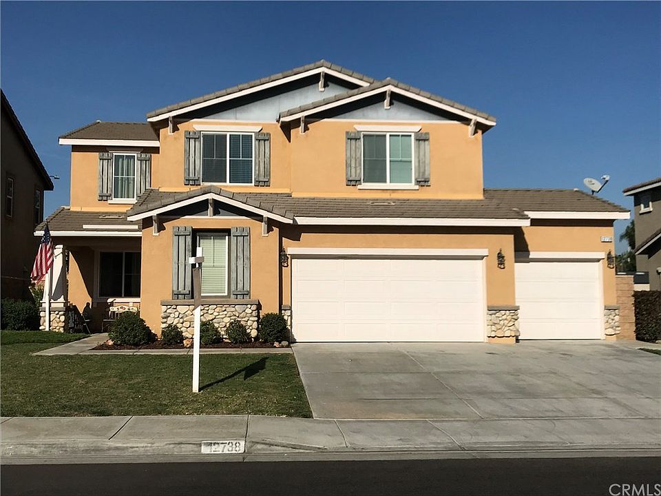 Agents Show this Beautiful Home in the great location of Eastvale a growing area located near Great Schools and Shopping Centers. A must see home, this Two Story Home offers a Formal Living Room and Dining Room, a Family Room with a Fireplace just off of the kitchen for shared family fun, the kitchen has a double oven, over range microwave and cent, with lots of Granite Counter top space, Granite island and updated cabinetry, a Pantry and high ceilings throughout this home, has a bedroom down stairs off a full bathroom, a Master bedroom with large Ensuite and large walk-in closet, three additional bedrooms upstairs, one of which also has a walk-in closet. You will be excited to find additional entertainment space "A Game room" or Kids space large loft upstairs. The Front and Backyard very neat and clean with pride of ownership. Interior has new paint, home has solar panels and newly installed concrete slab, drainage system and patio cover. Concrete slab layed over gas, drain, power and water lines which were extended into yard for future fire pit and outdoor kitchen.