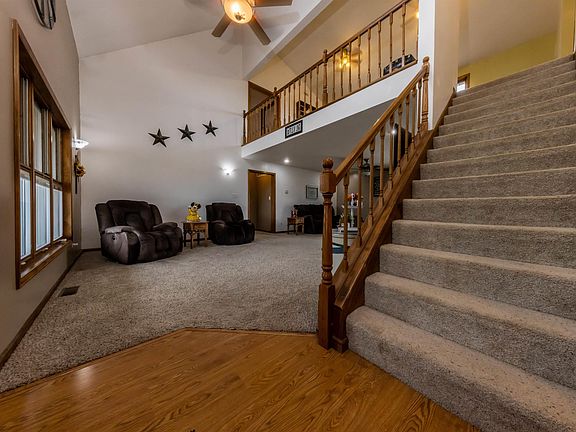 Over 3100 finished square ft custom home with classic front porch with Craftsman style architectural accents, settled beautifully atop 5.77 acres on a Country 'neighborhood' style cul de sac. 3 oversized bedroom spaces, the primary with multiple walkin closets. The addtional bedroom closets, almost large enough for bedrooms themselves. Walking in the front door you are met with Vaulted ceilings, plenty of light, expansive spaces, yet comfort throughout. Large custom kitchen with plenty of cabinets and additional pantry/storage spaces, a small office bump out and separate laundry center. The loft overlooks main living space perfect for a library, play nook or office. The partially finished basement offers rec space, with an egress friendly additional option for 4th bedroom finish and full bath. SO much storage space. Further property accents include a 30x30 Outbuilding for your additional 'toys', collections and hobbies plus your oversized attached garage and more.