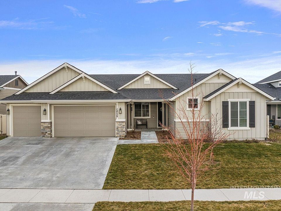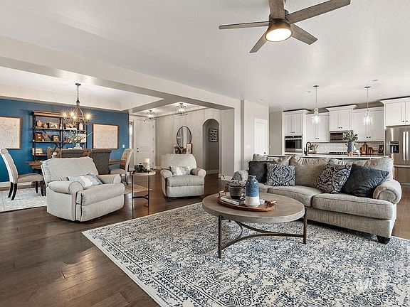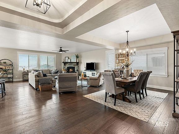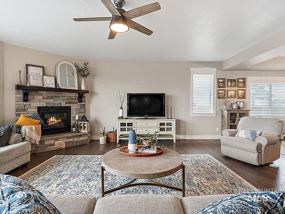 This beautifully designed Emerson floor plan is upgraded to the nines! Inside you will find a huge kitchen w/quartz counters, gas range top, informal dining area, as well as large island for those quick meals. When you are ready for family gatherings you will have plenty of space in the formal dining area and great room. The primary suite is spacious and offers a spa-like bathroom w/dual sinks, walk-in shower, separate soaking tub, two walk-in closets, & engineered wood flooring. Outside you will enjoy relaxing on your massive extended patio with peek-a-boo views of the foothills & no immediate backyard neighbors. Upgrades: engineered wood flooring, all bathrooms have quartz counters, tiled floors, tiled bathtub/shower surrounds, upgraded carpet, upgraded lighting, fireplace, the list goes on. The community of Carriage Hill West offers a community pool, walking paths, community parks, play areas & is close to great recreation including RedHawk Golf Course and Lake Lowell. BTVAI