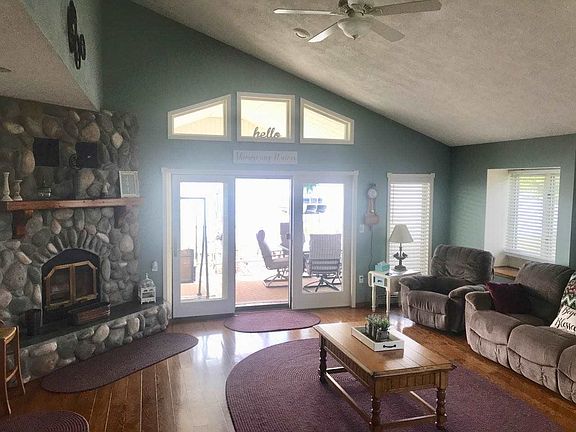 Simply Spectacular lakefront home on 95 ft of prime Houghton Lake frontage. Quality abounds in this 4 bedroom/3 bath beauty with breathtaking views of the lake from almost every room. Vaulted ceilings, stone faced wood burning fireplace, quartz counter tops in kitchen & tiled & wood floors are just a few of the many fine tuned amenities. Gorgeous kitchen with breakfast bar that sparkles with newer appliances plus lower level office. Two heating systems, heated garage, large covered deck for morning coffee & evening relaxation plus 100 ft of new aluminum dock. Lawn sprinkler system, landscaped grounds, 2 storage sheds, cement patio & fire pit. One of the few areas of the lake that has beautiful sandy bottom out front but deeper at the end of the dock. You won't find another one like this one anywhere on the lake!