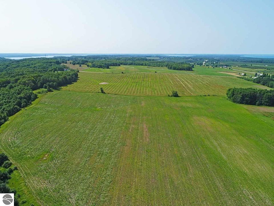 35 gently rolling acres with distant views of Lake Michigan/Grand Traverse Bay. Wooded along properties east and along Hjelte Rd. to the west. Old farm house and pole barn are present; however, no value placed on them. This property nestled between Grand Traverse Bay and Torch Lake. 10 minutes north of Elk Rapids.