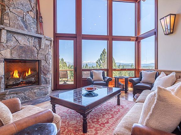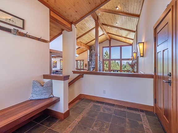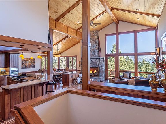The perfect combination of high quality, panoramic views, functional floor plan, features and all located in the amenity rich community of Tahoe Donner. Rarely do you find a home with this level of quality in Tahoe Donner. The stunning views will inspire you everyday from sunrise to sunset and through all 4 seasons. This highly functional floor plan works great for full time or second home use. The ability to easily accommodate a family, multiple families or a multi generation family could make this an extraordinary short term rental. The nearly new Mitsubishi Heatpump system with AC will keep you comfortable year around. All this backing to a large Tahoe Donner greenbelt and situated a short stroll from the Tahoe Donner Alder Creek Adventure Center (Mountain Biking and XC skiing headquarters)and the Tahoe Donner extensive trail system. Quality includes brand names like Viking, Thermador, Grohe, Fireplace Extrordinar, Windsor, etc. Exceptional craftsman finishes throughout including custom doors, cabinets, wainscot, trim, inlayed real wood floors, inlayed tile floors, wool carpet, custom stone masonry inside and out, Iorn wood decks with glass panel railing, etc. This is an absolute must see to truly appreciate The expansive view goes from the Carson Range (Mt Rose) to Northstar with Tahoe’s east shore mountain peaks in the distance. No looking over roofs tops or power lines here, just wide open spaces. This floor plan is incredibly functional and takes full advantage of the magical views. The great room with grand fireplace, large windows and deck will impress you as you come through the covered and protected front door. The extensive living room and dinning room windows mean you never have to give up the view. You can even take in the view from the spacious kitchen with prep sink and walk in pantry. Also on this level is the primary suite taking full advantage of those views from the bedroom and bath. The large walk-in closet has more than enough room for 4 seasons of clothing and then some. On the lower level you will find a beautiful family room with fireplace, wet bar, built in’s and deck access. Yes you still get the views even from this level Additionally on this level you will find the second suite which is a match to the suite upstairs. 2 nice sized guest rooms round out this level. But wait, there is more, a great bunk room that will have the kids asking if they can go to their room. From the lower deck you can access the level graded yard with horse shoes and a fire pit. Surrounded by mature Aspen trees you get a sense of serenity and privacy. Extras include a gear closet off the entry, heated bathroom floors, power shades, dual zone heat and AC, tons of storage, gas line to BBQ, bath tub with a view in each suite, Designed and built by long time local and well known architect Michael Dorwart. The thought that went in to the design of this home is apparent as soon as you drive in. The vestibule type entry protects the porch area and front door no matter how bad the weather. Once inside the slightly elevated entry perches you up just enough to take in the dramatic great room and Carson Range views. The incredible craftsmanship enhances the sense of just how special this home truly is. The great room proportions are perfectly laid out to make each space very comfortable. All but a couple rooms are situated to take maximum advantage of the views. This i in no way a standard Tahoe Donner home. This home was designed and built masterfully for this lot.