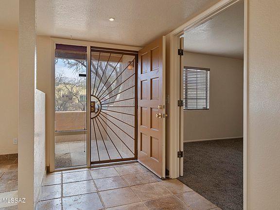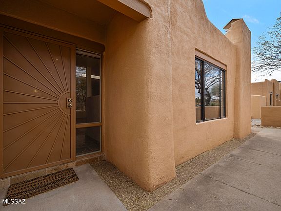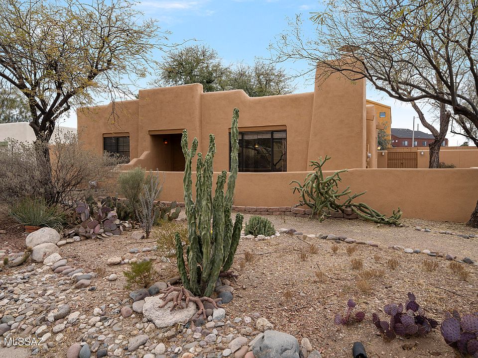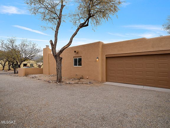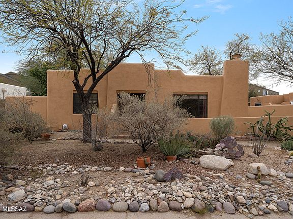 Rarely available in the sought-after Pueblo De Las Catalinas community, this charming Southwest-style home offers privacy and convenience. Just a short trip to the University of Arizona, the Loop, and Campbell Ave amenities, this recently remodeled 3-bedroom, 2-bathroom home features an updated kitchen with a gas stove, travertine tile, remodeled bathrooms with a deep soaker tub in the primary suite, and new carpet. The re-coated roof and fresh exterior paint add value, while the mature desert landscaping provides shade and beauty. Enjoy Catalina Mountain views from the cozy living room with a gas fireplace. Located at the back of the community for added privacy, the spacious backyard offers flagstone and honeycomb tile, ready for your personal touch. Don't miss this rare gem!