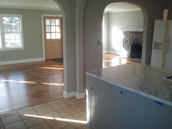 - Kitchen Features: Cabinets White, Breakfast Bar, Stone Counters, View to Family Room