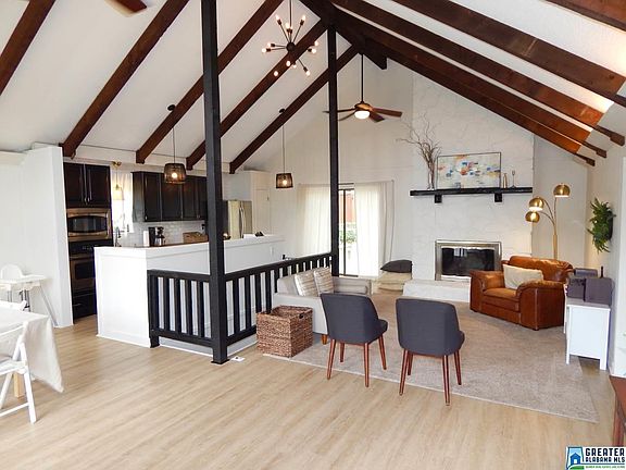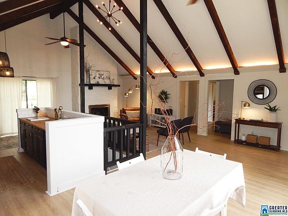 Get the Ross Bridge location (with convenience to Hoover, Homewood & UAB/downtown) at a fantastic price. Golden Forest, wedged in between Robert Trent Jones' Oxmoor Valley & Ross Bridge golf courses, feels tucked away from it all (horses are literally grazing at the neighborhood entrance), yet is only a few minutes from so much, including the new Publix that's coming soon! In this established neighborhood you will find this stylish A-framed beauty. Recently painted inside & out, with a newly open floor plan (to fully enjoy the soaring, beamed & vaulted ceiling), this lovely home boasts recently updated flooring, updated stainless kitchen appliances & butcher block countertops, updated light fixtures, new kitchen sink, newly painted cabinets, new hardware, & more. Stacked stone, wood burning fireplace. 3 spacious bedrooms, great master closet space, 2 full baths, a basement den / man cave, office, AND exercise room! 1-car garage & fenced back yard. All on a quiet, low traffic street!