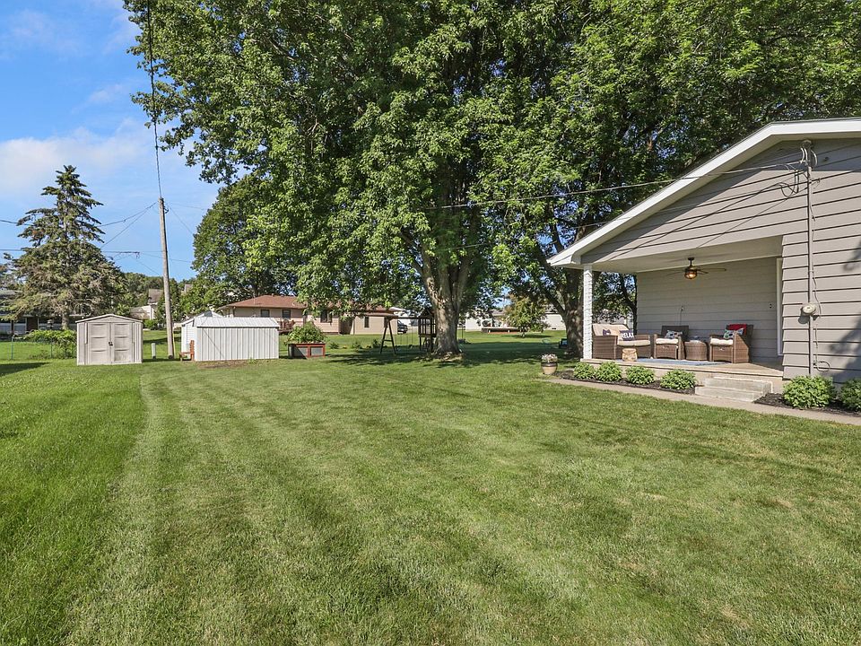 ALL THE FARMHOUSE FEELS ON NEARLY HALF AN ACRE! Private, country-like setting on the edge of town. Gorgeous ranch-style home with hardwood floors, farmhouse lighting, 6-panel doors, remodeled bathroom with marble vanity, & rustic farmhouse touches throughout. Soft gray is the backdrop, creating a fresh & relaxed vibe. Large kitchen/dining with crisp, classic subway tile. Plenty of space for a big 'ol farmhouse table! Head downstairs to find a large family room, a bonus room (office or playroom!!), a cute hidden playhouse, work bench, & room to add a 4th BR! Adorable covered patio with a light & fan. Staycations are the biggest trend of summer 2020 & you're all set with this large & lush backyard! A cozy fire pit, playset, 10x12 garden shed, & towering trees. Other delights include rhubarb, sedum plants, big spirea, burning bush, & a lily. Tomatoes & cucumbers are thriving in the corrugated metal raised garden. A heavenly 0.40-acre setting & farmhouse style make this home a rare find!