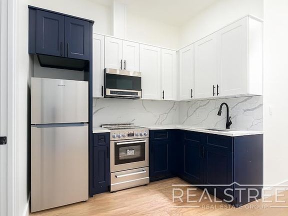 This grand, modern 4-bedroom, 1.5-bath floor-thru offers style and comfort in the heart of Bushwick. The open-concept kitchen boasts sleek, shaker cabinets, stainless steel appliances, and Quartz Carrara countertops. The bright living room features tall ceilings, recessed LED lighting, Bluetooth surround sound, wide-plank white oak floors, and access to a private balcony.