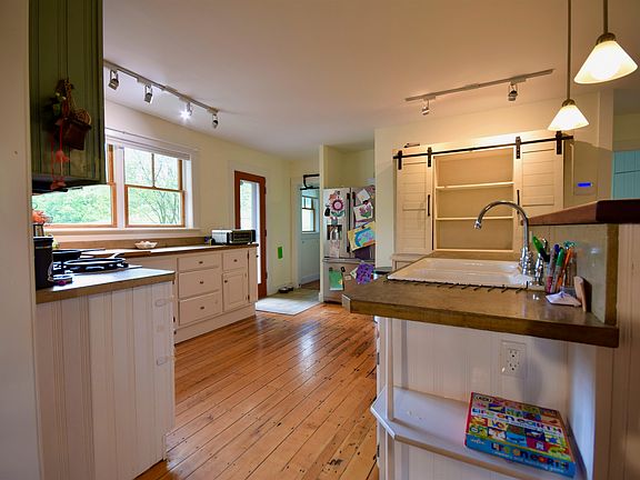 This 3 bed, 1 bath Farmhouse has character, history and charm including the stairs, exposed beams and natural wood floors. It's been significantly improved and renovated throughout the years. The more recent upgrades includes conversion to propane heat, deck and installed a head to a natural spring. Take in the stunning Mountain views right from the covered front porch. Fiber cement siding. 2 car detached garage. This property is selling with approximately 2 acres (pending final subdivision approval). Also under MLS 5002284 with 4.8 acres