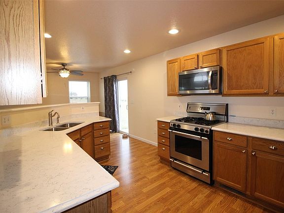 Nice home with 35 acres for Livestock, close to town of Strasburg, Has a loafing shed and other small sheds and chicken coops. Home has newer roof, new paint inside with brand new carpet. Kitchen has quartz counter tops, stainless steel appliances. Living room and dining room have beautiful wood floors. Main floor master with large closet 5 piece master bath, sliding glass door on to a large patio. Very Large Beds 2 and 3 are on the upper level. One bed has a walk in closet they share a full bath. 1/2 bath on main level next to main floor laundry. This home is great if you want animals and still be close to town. Come see it soon