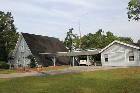 A-Framed, one family owned property on a double lot situated on a protected canal WF, seconds away from the Big Water, has party deck over covered carport, lots of storage, has its own boat ramp, has built in outside grill, 3BR, 4thBR used as a craft rm, boat house w/wench to house fishing boat.. Sold mostly furnished w/exception to personal items,pontoon boat to convey. B AGENTS PLEASE MEASURE