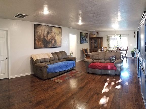 Seller will pay $6,000 towards Loan interest rate/closing costs/upgrades. A Renovated 4 bedroom, 2.5 bathroom home. 2 master rooms with attached bathrooms. Upstairs has a bedroom an office - with deck look out - it may be used as a 5th bedroom with closet or loft/family room. Home has easy maintenance (approx. 2 year old) wood machined laminate flooring through-out. Furnace and AC compressor replaced in 2018, Gas Range in 2021, Main Well Pump in 2021 and irrigation pump in past year. This home is located just south of town in an established neighborhood. It's been mostly upgraded/renovated with: windows, doors (including hardware), flooring, light fixtures, interior and exterior mostly painted and more. A 16 X 40 foot concrete floored shop with 7 foot wide door entry (Other garage). Land has ample room for a Motor Home/RV parking by side of main Garage. Beautifully sized yard with Pear, Apricot, and Apple trees plus a tilled garden area. Quiet peaceful living with view of horse pasture from yard. Thank you.