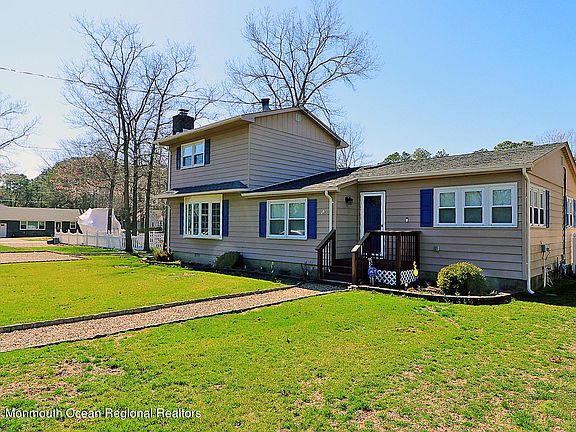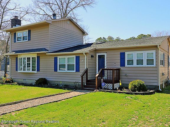 This custom 2 story puts the master bedroom on the second level with access to outside deck, master bath , w/ stall shower, walk-in closet and spiral staircase to access it. First floor features two bedrooms, Main Bathroom, an updated kitchen with granite counter, bar stool seating , beamed ceiling with skylight and stainless sink. 2 zone heat, furnace replaced 2018, one zone a.c. Family room with fireplace and French doors to outside deck. Large corner property with lots of parking room, fenced yard with professionally cared for and maintained above ground pool. Trampoline, and security system active. All floors on 1st floor upgraded to grey wood-like vinyl.