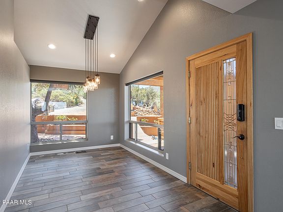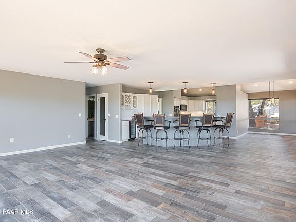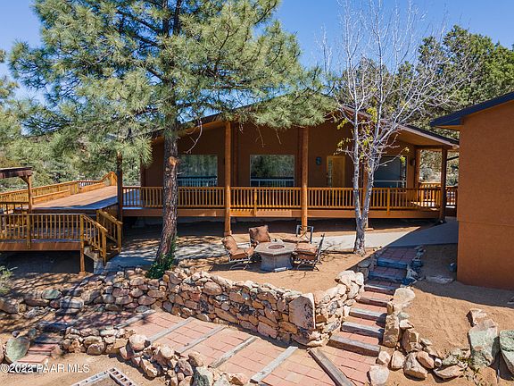 Come see this beautiful one of a kind, renovated home with million dollar views! Gorgeous open concept floor plan, featuring a large kitchen, granite counters and new appliances. Kitchen opens into a huge family room with panoramic windows and leads to a wrap around deck. Main level living with primary bedroom, 2 guest bedrooms and laundry room. Primary features an on-suite bathroom, jacuzzi tub, custom shower and his and her walk in closets. Bonus room off of the master could be used as a study or home gym. Enjoy Prescott's great weather from the outdoor living spaces. Deck is both covered and uncovered for any type of weather, custom hot tub area with pergola cover. A fully fenced dog run and raised garden beds. Minutes from downtown and the national forest!