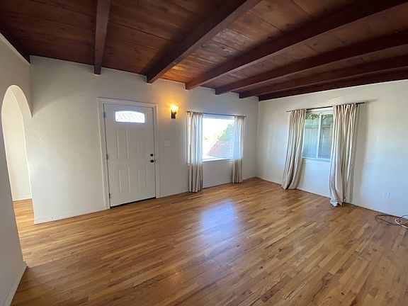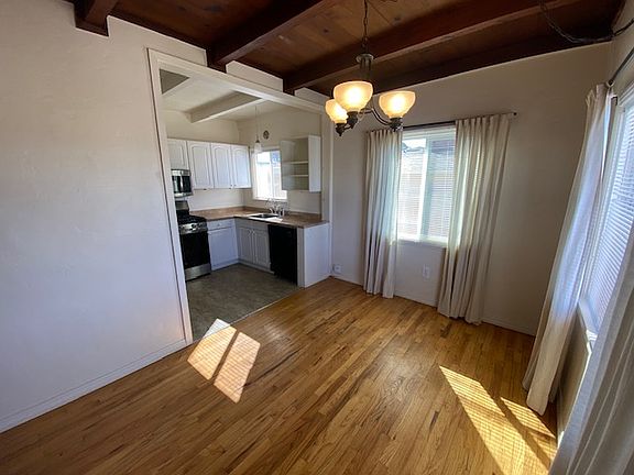 This well-maintained bungalow offers a cozy and inviting atmosphere! The home features: 2 Bathrooms: One with a shower and one with a shower over tub. Hardwood Floors: Beautiful oak hardwood floors throughout the living areas, with tiled bathrooms and kitchen. Living and Dining Room: Spacious and bright, perfect for entertaining. Kitchen: Equipped with a new gas range, dishwasher, refrigerator, and built-in microwave. Single Garage: Includes a workbench with cabinets and a laundry area with a utility sink. Courtesy washer and dryer provided. Outdoor Spaces: Easy maintenance front and back patios, a sunny front porch, and a backyard patio accessible from the second bedroom, garage, and side gate. Parking: Room for two vehicles parked in tandem in the driveway. Lease Details: Yearly lease Rent: $3,100 per month Security Deposit: $3,100 Non-Smoking, Non-Pet Property Tenant responsible for all utilities and services, expect sewer and basic gardening.