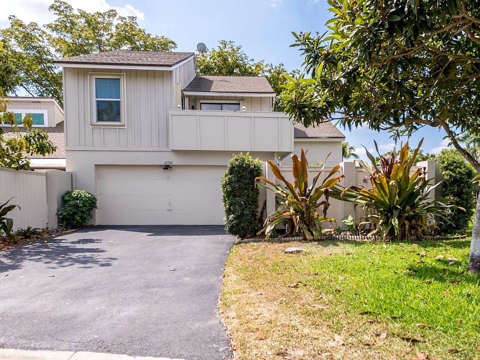 Welcome to 12740 Spinnaker Lane! Very spacious townhome on a canal leading to Lake Wellington. 3 bedrooms and 2 bathrooms are located on the second floor and there is a full bathroom on the first floor. There is also a den and it can be a play room, office or a guest room. Eat in kitchen with a big pantry, separate dining room and huge living room. 2 of the windows on the second floor impact and all windows have accordion shutters. Private, paved courtyard with fruit trees. Home comes with a generator. The screened patio is very private and facing the canal. The monthly Hoa fee covers the building insurance, lawn care and community pool.