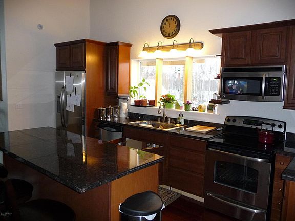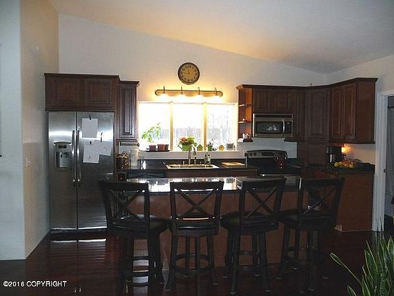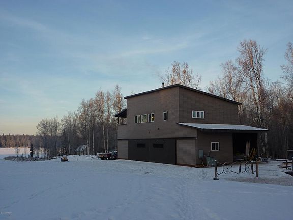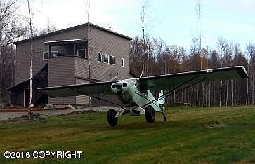 Newer super insulated Lake Front home. Vaulted ceilings, tons of sunlight & gorgeous views of Brocker Lake & Mt. Susitna. Lake is approved float plane (6A7) & stocked with Rainbows, catch 12-16'' & occasional 24''trout! Approved private airstrip(AK85) if you want your plane on wheels. A barn and separate pasture for horse lovers, a 10x20 greenhouse, a dock & gazebo. Live the Alaskan Dream! SPECIAL FEATURES OF THIS HOME * 9.2 Acres with 379' of lake frontage! * Borough maintained road access- 10 minutes to gas station superstore and Post Office, 15 minutes to Three Bears and 20 minutes to Downtown Wasilla. Easy commute to Anchorage. * Private FAA approved airstrip (Birchwater AK85) on an FAA approved floatplane lake {Brocker 6A7). * Home was constructed with 42' engineered clear span trusses. Floor trusses were increased from 3' to 4' depth to strengthen and minimize deflection. Trusses are 24" o.c. and each truss is supported by a 6" cripple stud and sandwiched between two 6" king studs ... 3 studs every 24" ! Tripled trusses over hangar door. Second floor trusses and studs are directly above first floor trusses and studs so roof snow load transfers directly to the foundation. All exterior walls have horizontal 2x4 purlins on the inside for greater insulation, lateral rigidity (shear walls) and a thermal conductance break. 8" Walls. * Roof has 24" fiberglass batt between 3' trusses and 11/2 foam between purlins that are perpendicular to trusses. Approximately R-80. * Interior thermal barrier upstairs is uncut 6 mil folded at corners. Sconces were used throughout the home. The ONLY ceiling penetration is for the wood stove chimney. * Wood stove is very efficient with outside combustion air and high efficiency thermostaticall controlled fan- heats the entire upstairs all winter. * High efficency Tayo OM-180 boiler provides heat and domestic hot water though stainless heat exchanger. Downstairs heat is radiant, upstairs baseboard. *Roof sheds snow behind the home to minimize shoveling! Fantastic sun/southern exposure year round! Incredible lake and Mt.Susitna views! * Insulated greenhouse. Apple and cherry trees. Lakeside gazebo. 8'x20' dock. Boat launch. Horse barn and fenced pasture (note if barn was removed runway could be extended another 130'. *Home is wired for emergency backup generator. * Seller says additional bathroom can be easily added between the two smaller bedrooms for $10,000-$15,000 and hangar doors can be easily replaced by two double garage doors Seller is a licensed real estate agent in Arizona